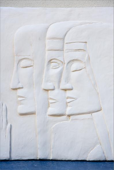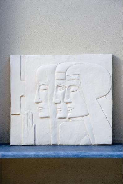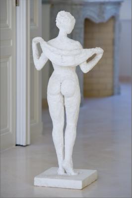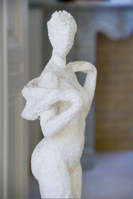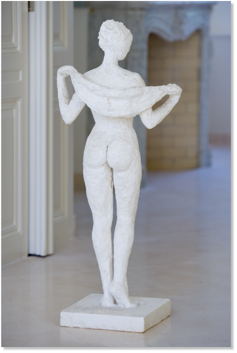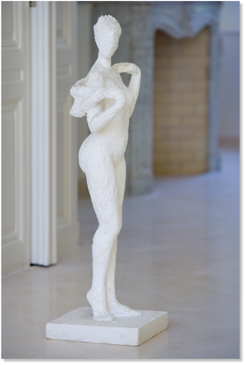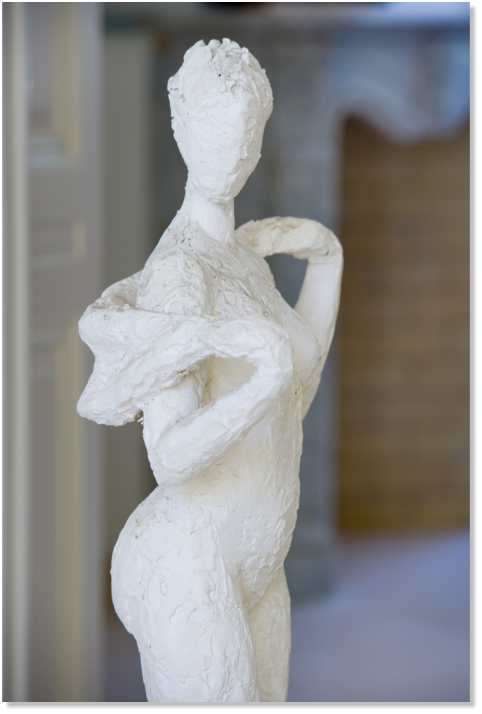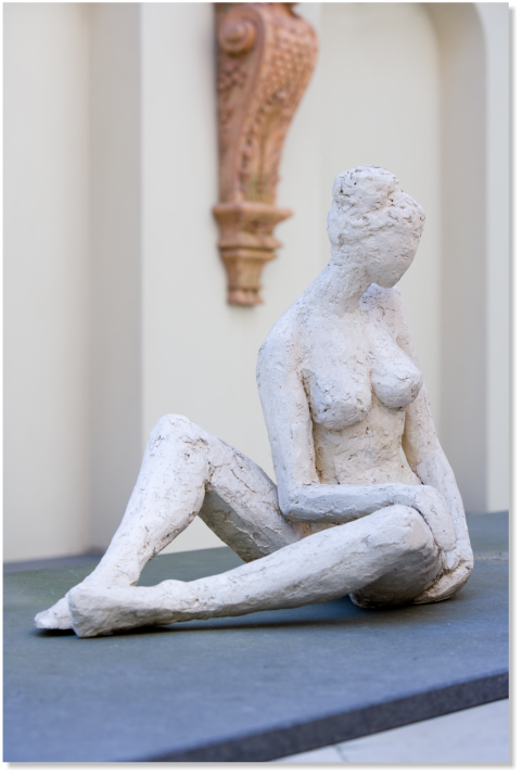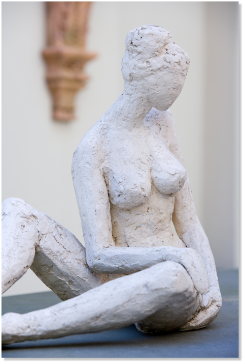 daarbij een contrast tussen de “ruwe” verwerking en de vrouwelijke vormen,